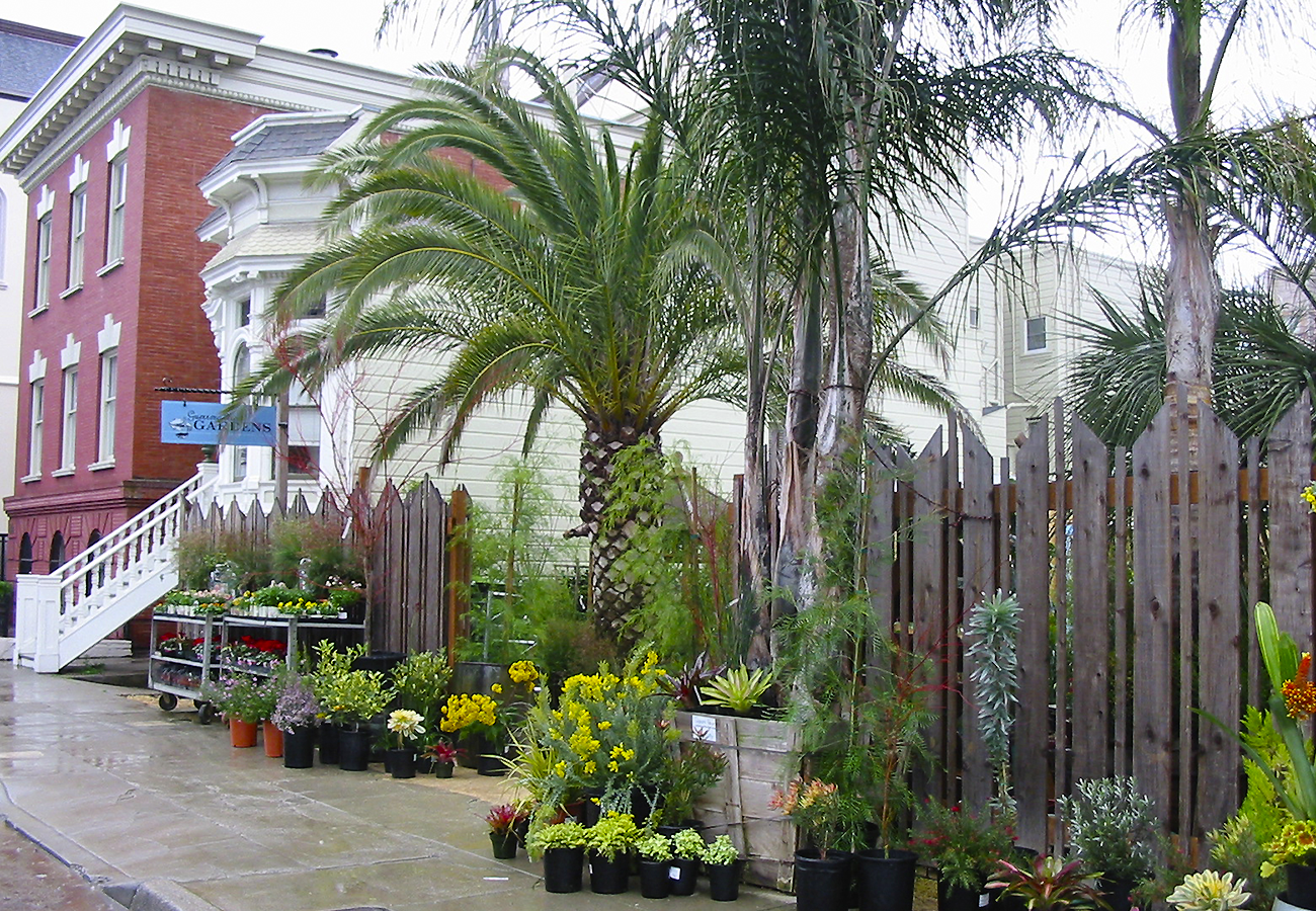 They formed Grubb & Nadler, Inc., and bought the Palm Broker, a small nursery on Guerrero Street in the Mission District. After a winter’s worth of hard labor cleaning up the site and creating displays of plants and pottery, they opened their nursery on a lucky rainy day in April 2003. It didn’t take long for the nursery to become a destination for San Francisco gardeners and plant-lovers. Neighbors grew to cherish the nursery as a semi-public garden in their dense neighborhood of Victorians set amidst rushing traffic.