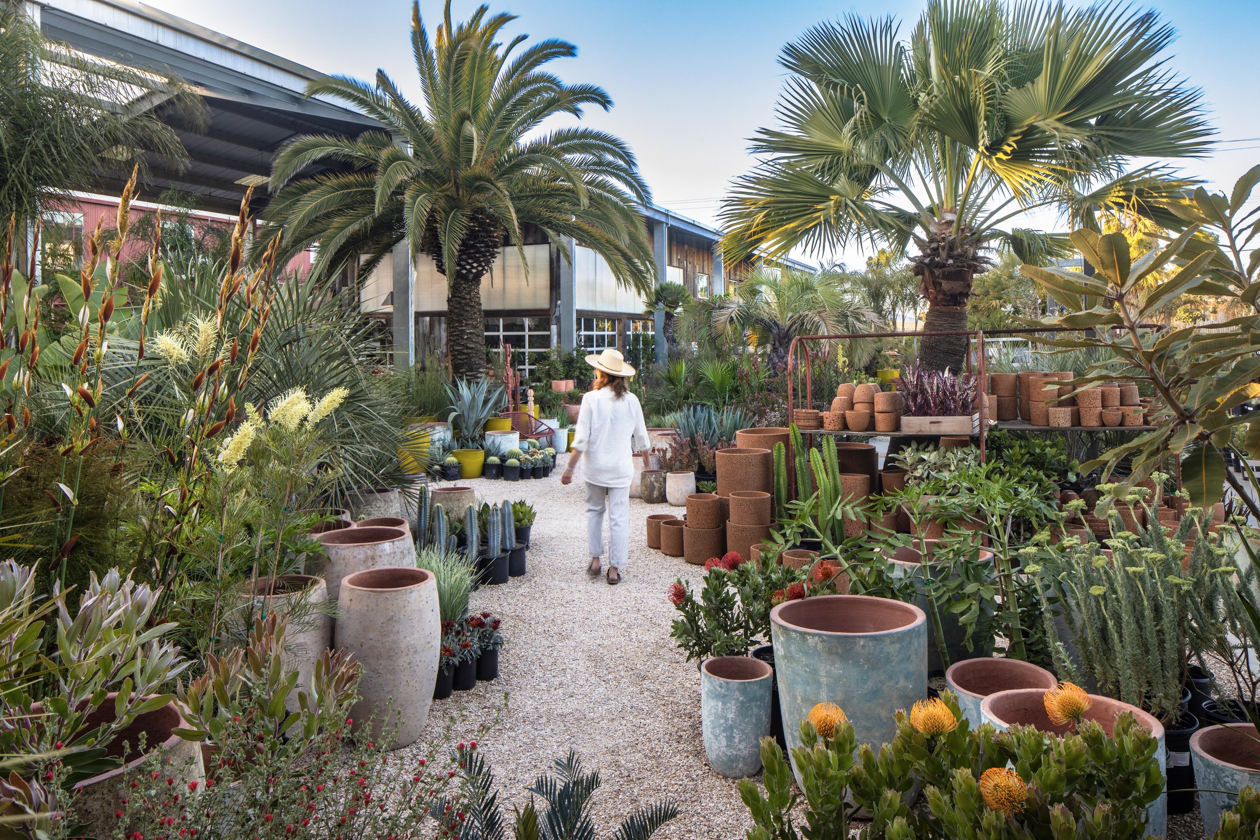 Flora Grubb Gardens brings our vision for the California Garden to the west side of Los Angeles. After twenty years with a single retail store in San Francisco, we have a second location in Marina del Rey. The two acre store has tons of room for the lush and artful displays of outdoor furniture and pottery arranged in an inviting garden-like setting, and can easily accommodate the full bounty of plants that we grow on our farm in the beautiful Rainbow Valley.