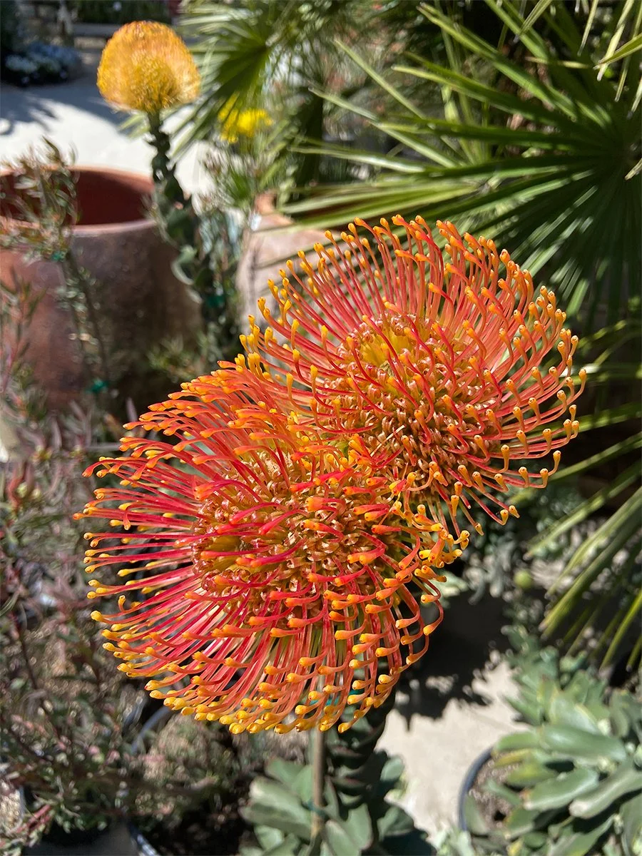 Protea and Leucospermum are low-maintenance, high-impact bloomers here in coastal California. Whether you've seen them at the Presidio Tunnel Tops Park, a neighbor's garden, or in a bouquet, these durable shrubs produce unique, long-lasting blooms. In addition to flower power, their evergreen foliage adds lovely texture and color to the garden.